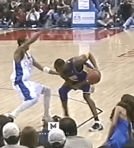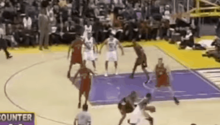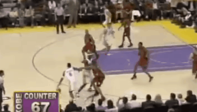 2000年夏天,科比练成了高起跳、高出手点、略带后仰的滞空中投,专门用来应付对方的高强度防守。2006年,他不停地在两三个人头顶出手。