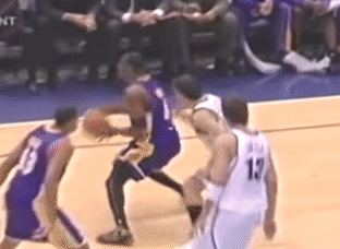 他的右手突破急停跳投和左手突破急停跳投,动作甚至全然不同 ——左手突破急停跳投比较顺势,收球即可;右手突破急停跳投时,他通常会从双脚平行起跳,空中扭转到右肩靠前(还经常要踢右腿保持平衡)。在进攻端,几乎没有他做不出来的动作。到最后,遇到不同防守,他的身体便像条件反射般转换到进攻状态,其速度之快甚至不需要调整。无论是背身单打、面筐切入、无球跑动后接球绕掩护寻求攻击,他都有无数花招可以展示。他的射程远达半场的任何地点,体能支撑每场30次甚至40次的投篮。